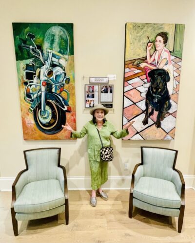 Photo 18-The Carrollton New Orleans resident Rise Delmar Ochsner poses in front of two of her paintings; now part of the permanent art display at the senior living community.